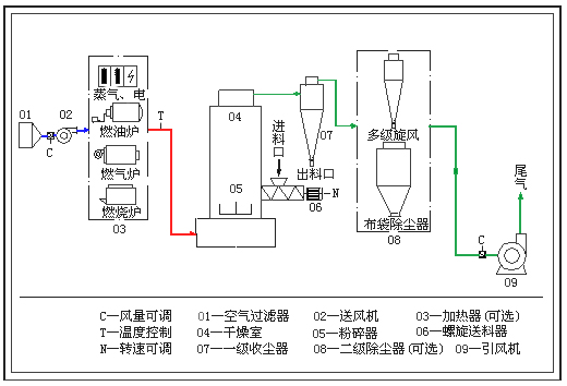 該系列設(shè)備是總結(jié)了流化床、熱破碎、旋流和分級技術(shù)的基礎(chǔ)上,開發(fā)、設(shè)計(jì)的一種熱效率高、適用范圍廣的干燥設(shè)備。